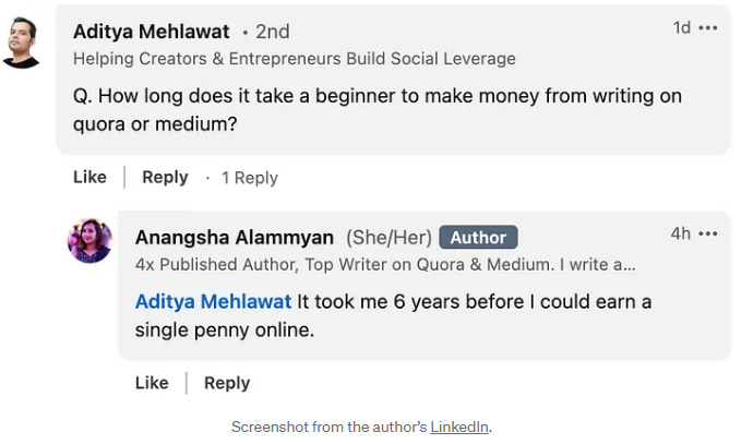 I started writing on Quora in 2014. The first time I made any substantial money from my online writing was in 2020.